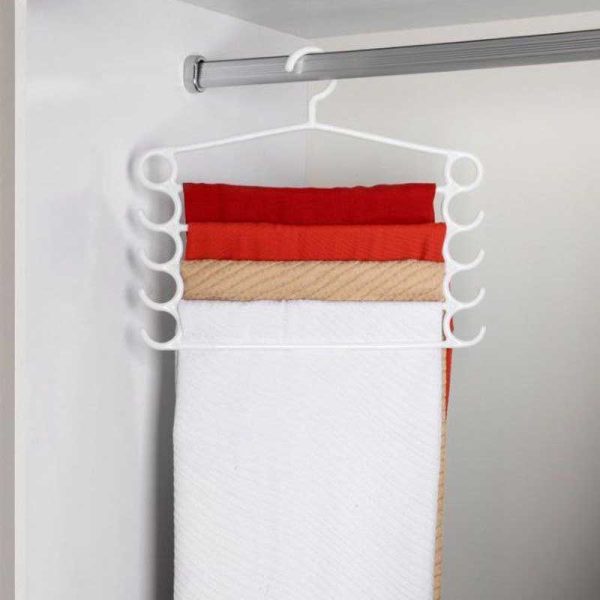 ویژگی دیگر این آویز طراحی های هلالی شکلی است که در کناره های آویز وجود دارد که به شما کمکمی کند تا بتوانید لوازم دیگری همچون کراوات و کلاه و کیف هایتان را آویزان کنید. بدنه آویز از کیفیت بالایی برخوردار است و می توانید علاوه بر شال و روسری برای نظم دهی شلوارهایتان از آن استفاده کنید. اگر کشو یا کمدی برای چیدمان شال و روسری ها ندارید با استفاده از آویز شال می توانید از کمد آویز لباس ها برای نظم دهی به شالهایتان استفاده کنید و انها را براساس میزان استفاده روی طبقات ان بجینید. طراحی اویز به شکلی است که دسترسی به شال و روسری روی ان به راحتی امکان پذیر است.