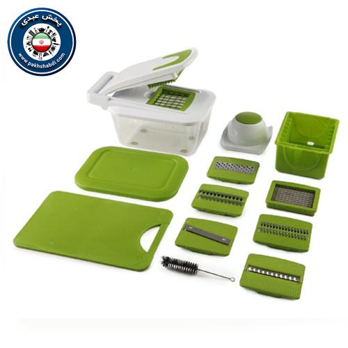 خردکن نایسردایسر 8 کاره تاپکو محصولی با طرحی خاص و منصحصر به فرد می باشد که با استفاده از آن می توانید انواع مواد غذایی را به زیبایی خرد، اسلایس، رنده کنید و همراه آن نیز یک تخته، پوست کن و ظرفی برای نگهداری مواد غذایی وجود دارد و دستگاه به صورت دستی کار می کند.