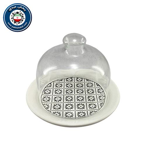 ظرف کره خوری شیشه ای مایا هوم از یک بشقاب سرامیکی سفید رنگ که درون آن طرح های جذاب و زیبایی به رنگ مشکی ایجاد شده به همراه یک درب شیشه ای مرتفع که به شکل مربعی با گوشه های گرد که جنس آن شیشه ی شفاف است تشکیل شده و روی درب آن دستگیره ای به شکل گرد و زیبا قرار دارد که علاوه بر ظاهر زیبا توسط آن می توان درب ظرف کره خوری را برداشت و از کره ی داخل آن استفاده نمود.